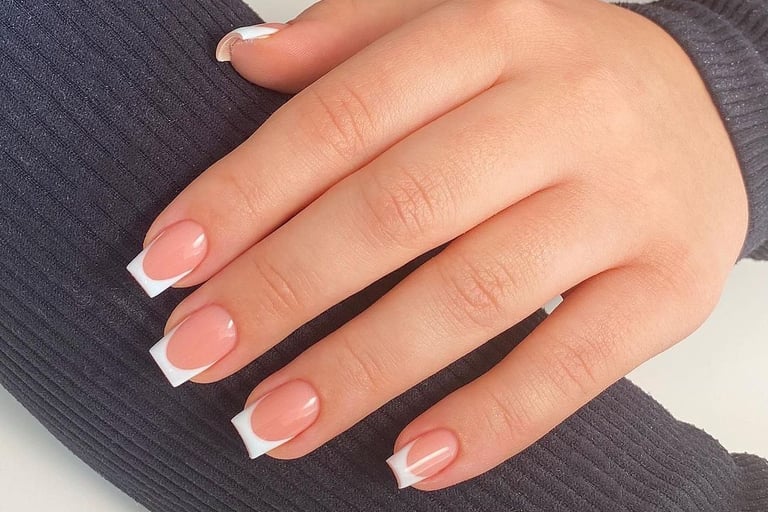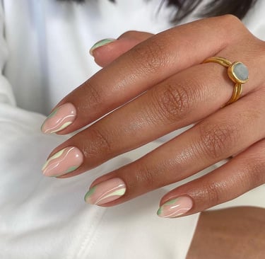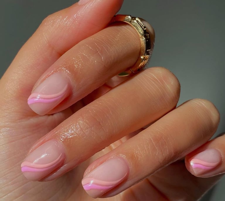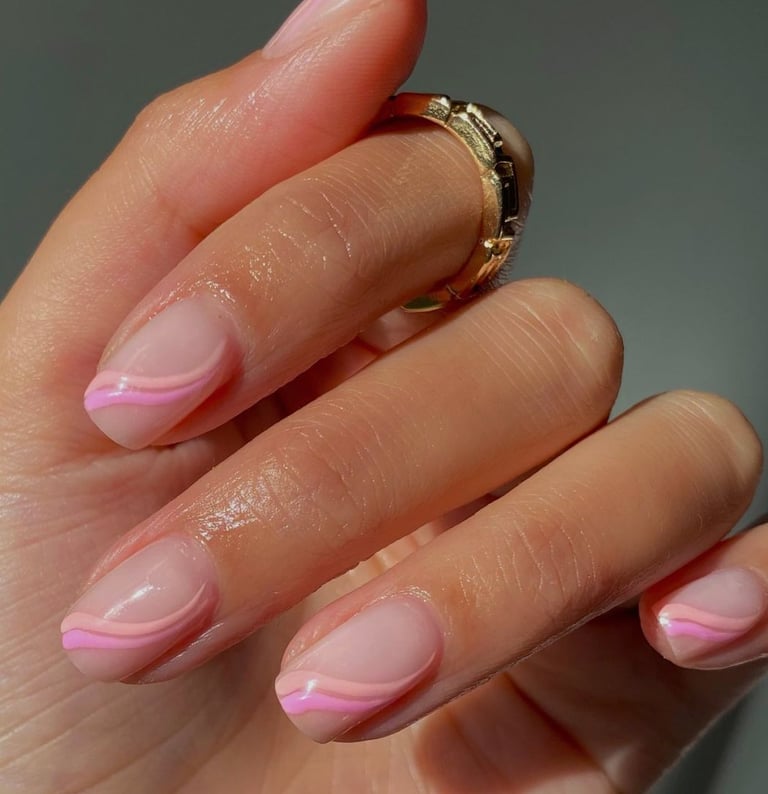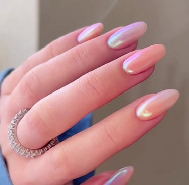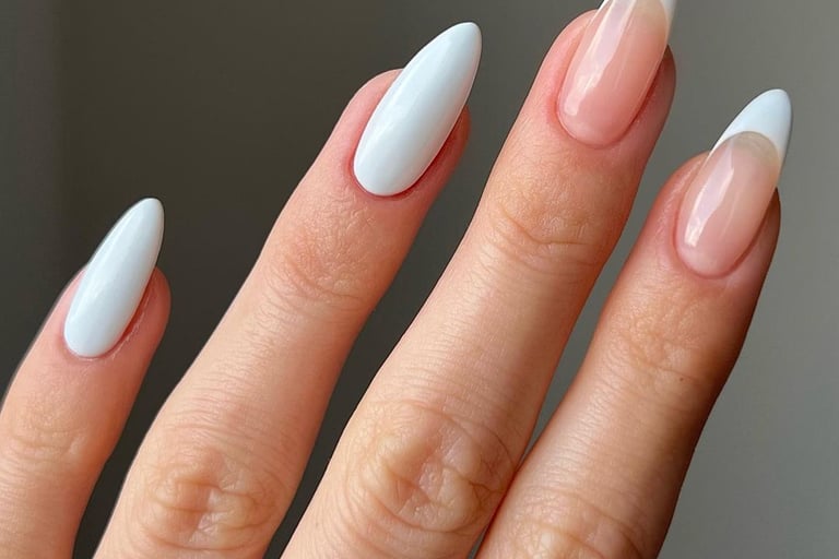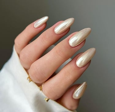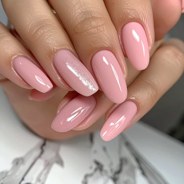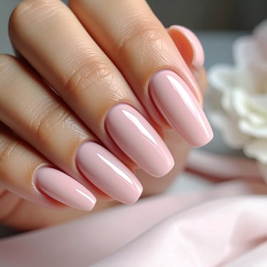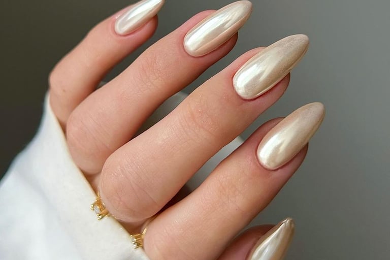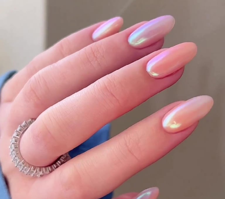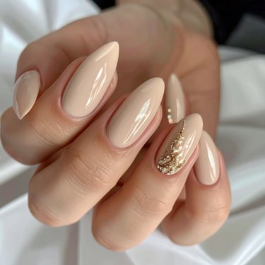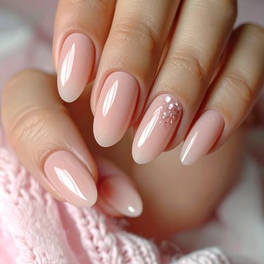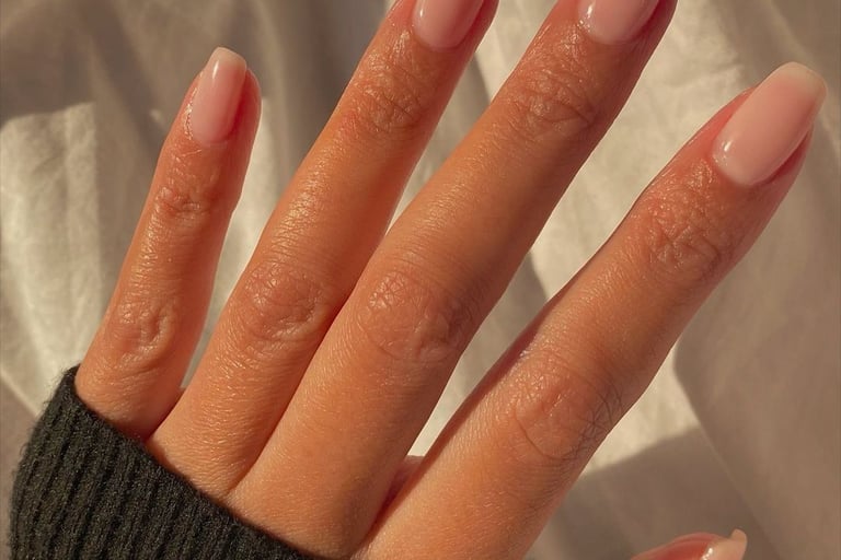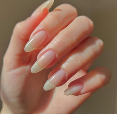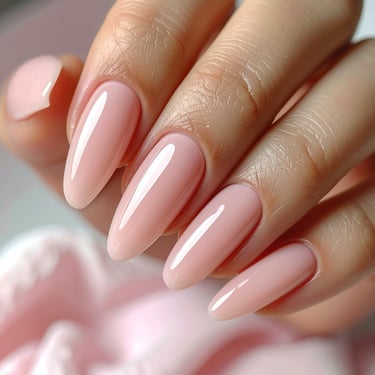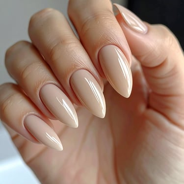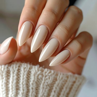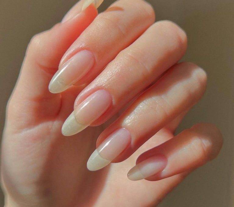 Chic almond-shaped BIAB nails finished with neutral gel polish