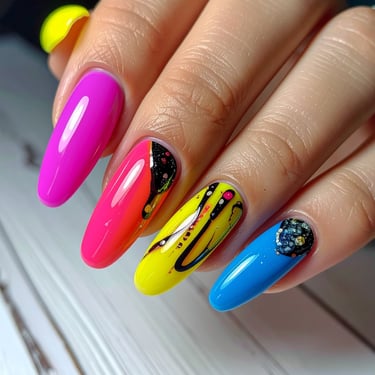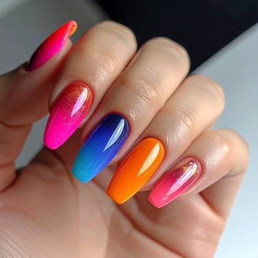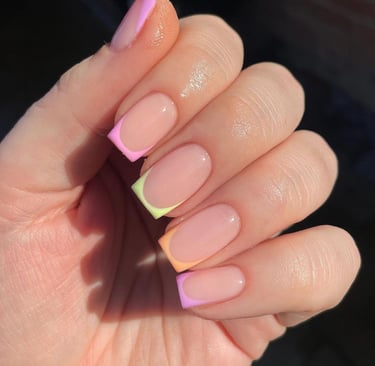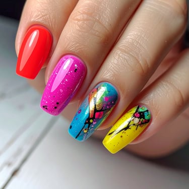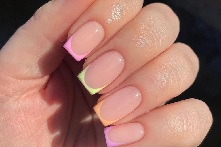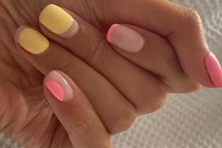 Bright colored gel polish on BIAB-enhanced nails for bold looks