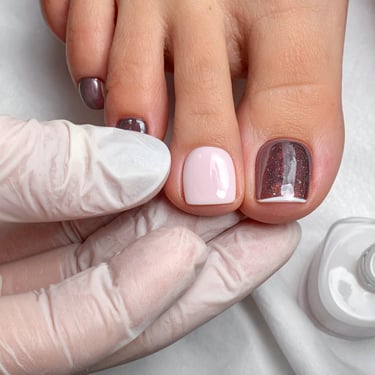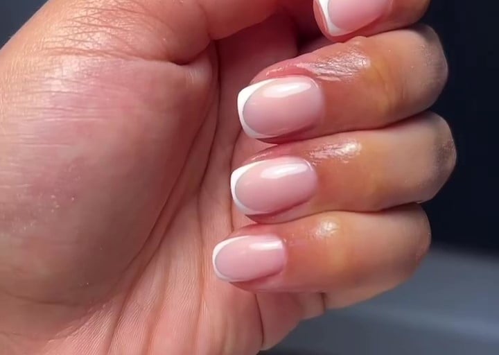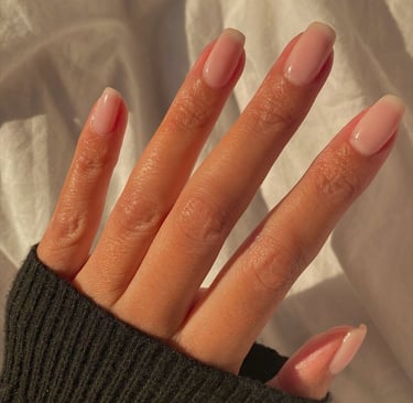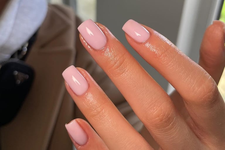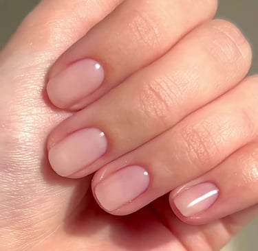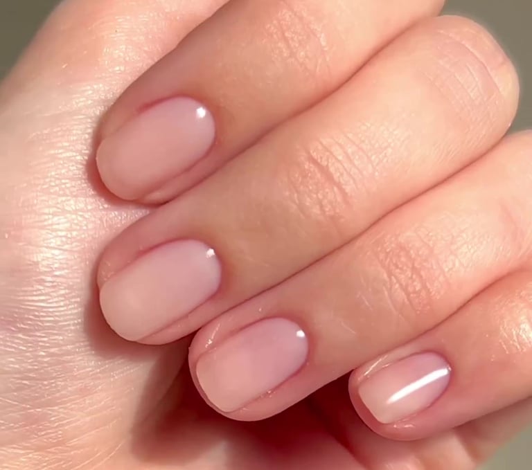 Natural & glossy BIAB nails, perfect with a soft gel polish finish (nude/pink tones)
